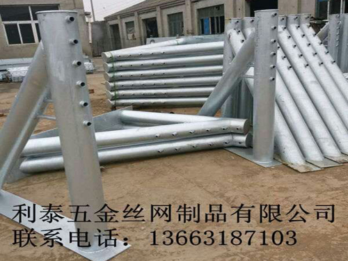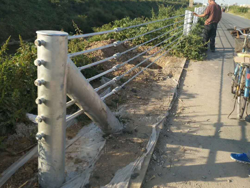 五索纜索護欄端部立柱一般規(guī)格是:柱:168*5*1680,斜撐:168*5*2100;底部鋼板:200*9*2000