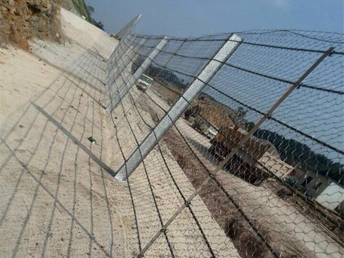 鋼性防護(hù)網(wǎng)能量等級分為25KJ 50KJ 100KJ三種以適合不同情況下的落石防護(hù)需要,鋼性防護(hù)網(wǎng)每段長度范圍一般為30-60M,為了更好的發(fā)揮鋼絲繩的柔性,在平坦地方可以盡量拉長(最長可達(dá)80M),如果不到30M,由于鋼絲繩的變形量將減小,鋼絲繩吸收的能量也會減小,需要考慮選擇高一等級防護(hù)能量的產(chǎn)品,或者提高消能裝置的防護(hù)能量,剛性防護(hù)網(wǎng)系統(tǒng)高度一般為1.8和2.5M高。